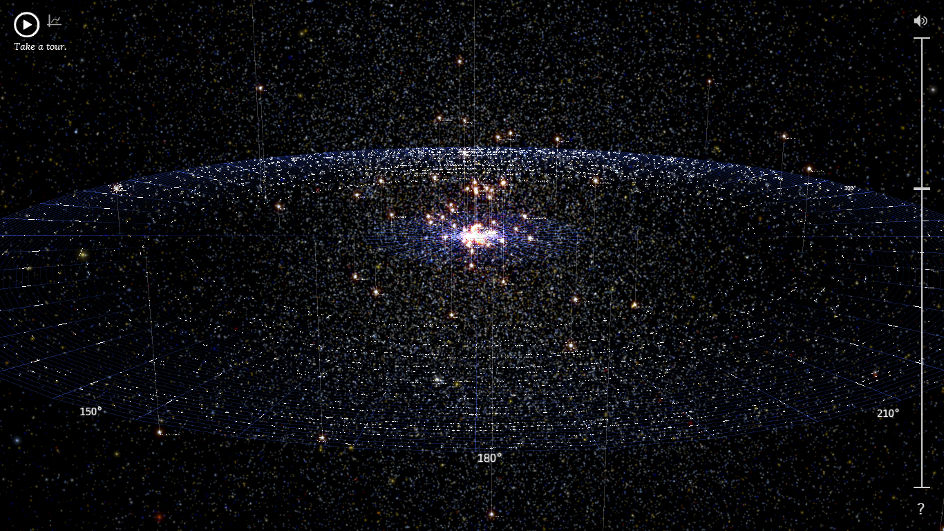 Se puede obtener información detallada de las estrellas más conocidas, posiciones relativas de las estrellas en la nube de Oort, una nube esférica hipotética de estrellas, cometas y asteroides cerca a nuestra galaxia, también se puede observar las orbitas de los planetas de la Vía Láctea.